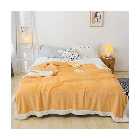 ขายส่งราคาถูกOoko-Texสีเหลืองนุ่มพิเศษเดินทางในฤดูหนาวผ้าสักหลาดเชอร์ปาผ้าห่ม