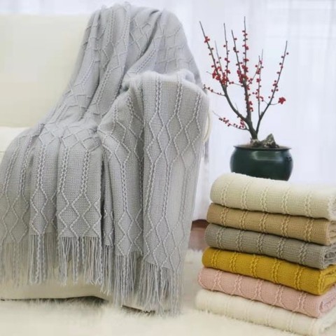 อะคริลิคคลาสสิกโยนผ้าห่มพื้นผิวที่เป็นของแข็งนุ่มสำหรับโซฟาโซฟาตกแต่งที่นอนถักโยน